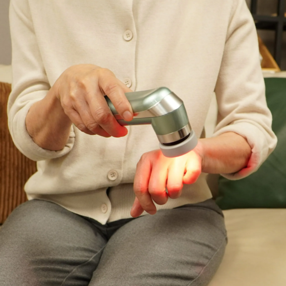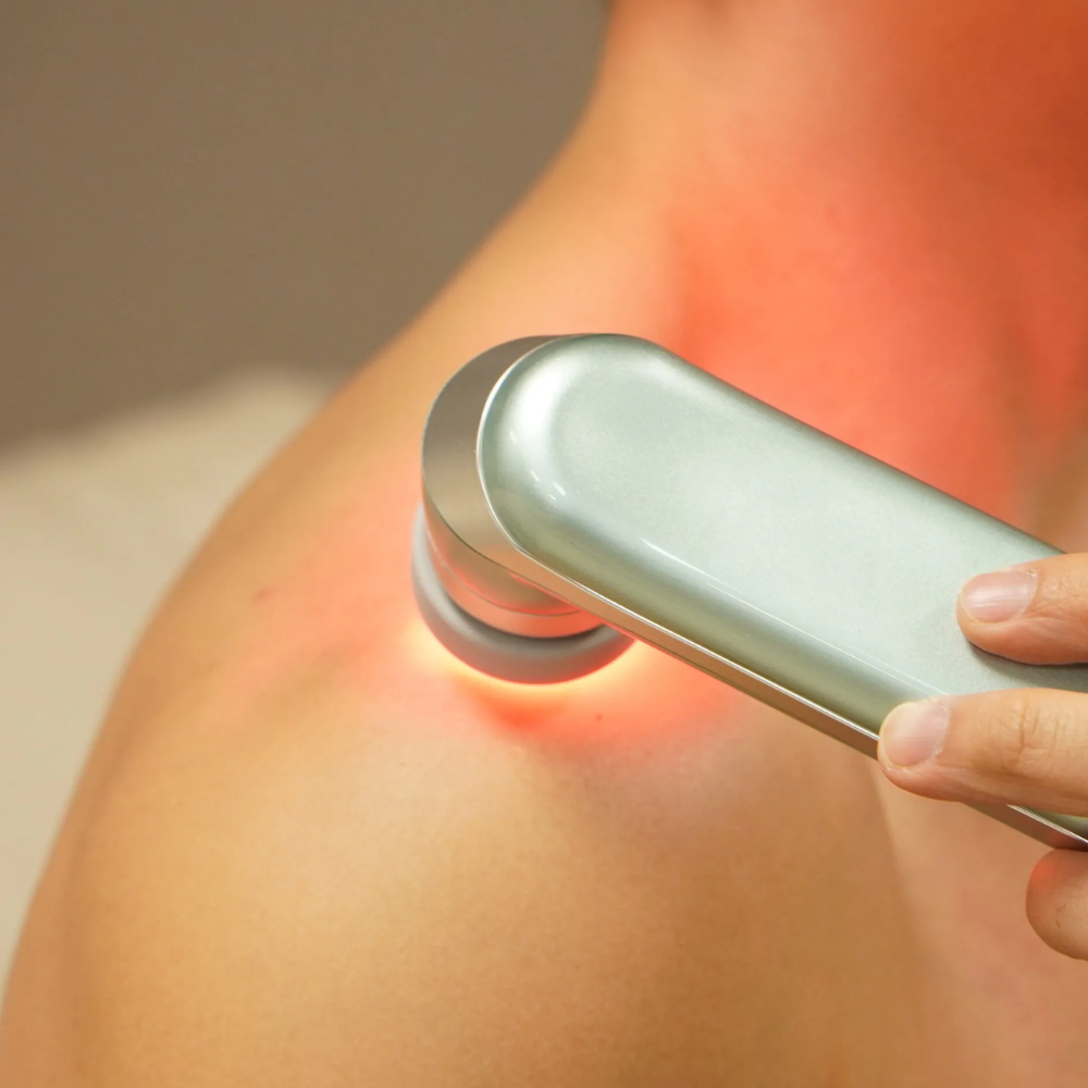 它結合了 PBMT 雙波長光療 (紅光+近紅外線)、深層震動按摩 及 熱敷 三大技術。紅光修復細胞,震動鬆弛筋膜,熱敷促進循環。無論是長年的勞損痛症、運動受傷,甚至是貪靚想淡疤嫩膚,它都能全方位照顧你和家人的健康。
